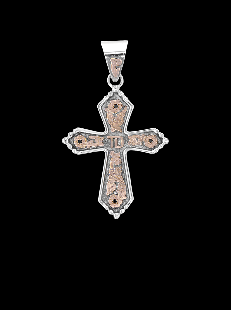 Enjoy this customer favorite, the Custom Tall Cross Pendant w/ Accent Stones!  Add initials or a brand to be feature in the center. Choose birthstones or a favorite color for the accent stones!
