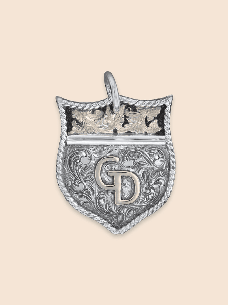 The Small Back Number Pendant is a magnificent way to commemorate life’s biggest moments in and out of the arena. Surrounded by artfully crafted rope edging, this pendant can be personalized with initials, lettering, or a ranch brand in your choice of silver, yellow gold or rose gold.